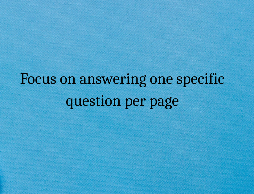 Focus on answering one specific question per page